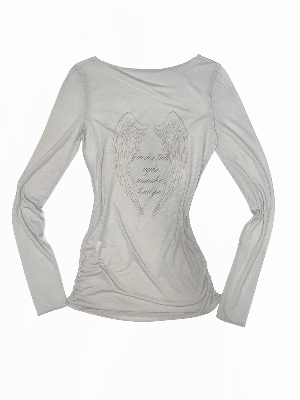 - 백 날개와 레터링 문구 프린팅 디테일로 빈티지한 스타일